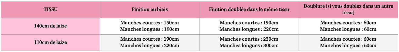 Deux finitions sont possibles : une version doublée ou une encolure finie au biais.
