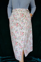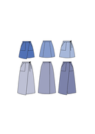 C’est un modèle de jupe portefeuille simple ou asymétrique qui se croise et se ferme sur le devant gauche par un noeud ou un bouton. Le pan de gauche se rattache à l’intérieur du devant droit par une boutonnière. La jupe Edith dispose d’une ceinture simple qui marque la taille. Elle est prévue avec une doublure. Les poches plaquées sont optionnelles et permettent de jouer avec l’asymétrie du modèle si on choisit de n’en mettre qu’une.