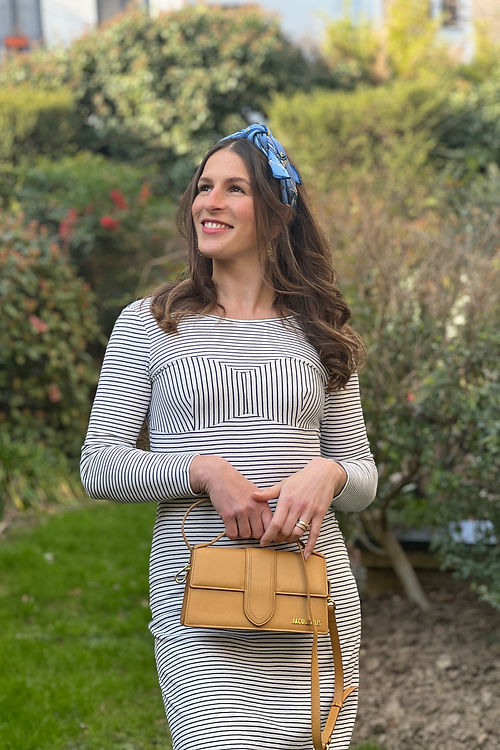 Vous pouvez casser le côté très féminin de la robe en la cousant dans une maille à grosse côtes, à porter avec des baskets.