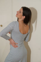 La robe Leslie est caractérisée par un empiècement poitrine qui rappelle les découpes d’un corset. C’est une robe plutôt près du corps, qui possède également un décolleté dos (soutien-gorge compatible).