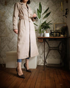 Gabrielle est un manteau ample, structuré et résolument féminin, qui revisite les codes du trench classique tout en conservant son esprit iconique.