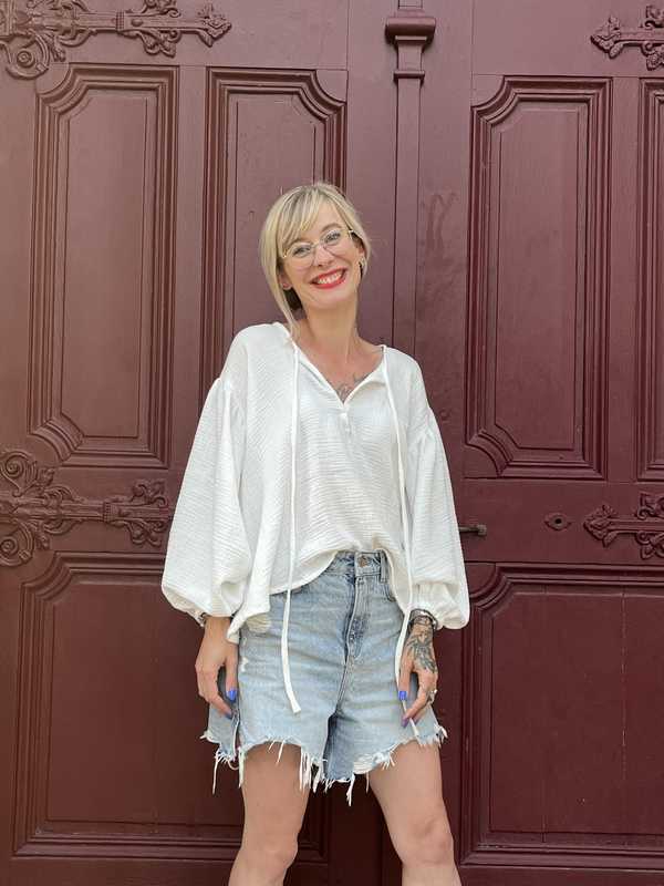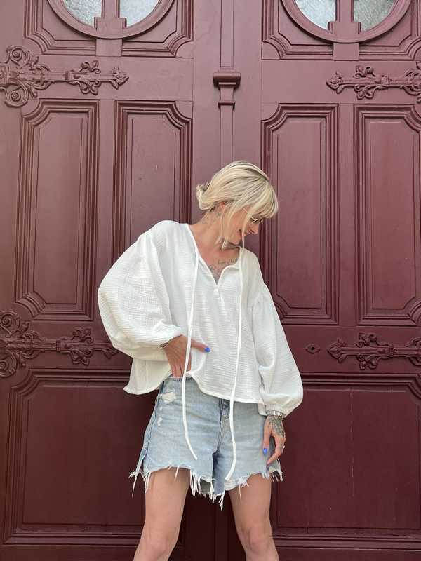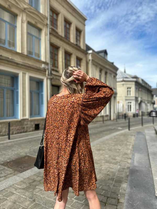Aria est à la fois une blouse et une robe. Elle se caractérise par sa coupe ample avec