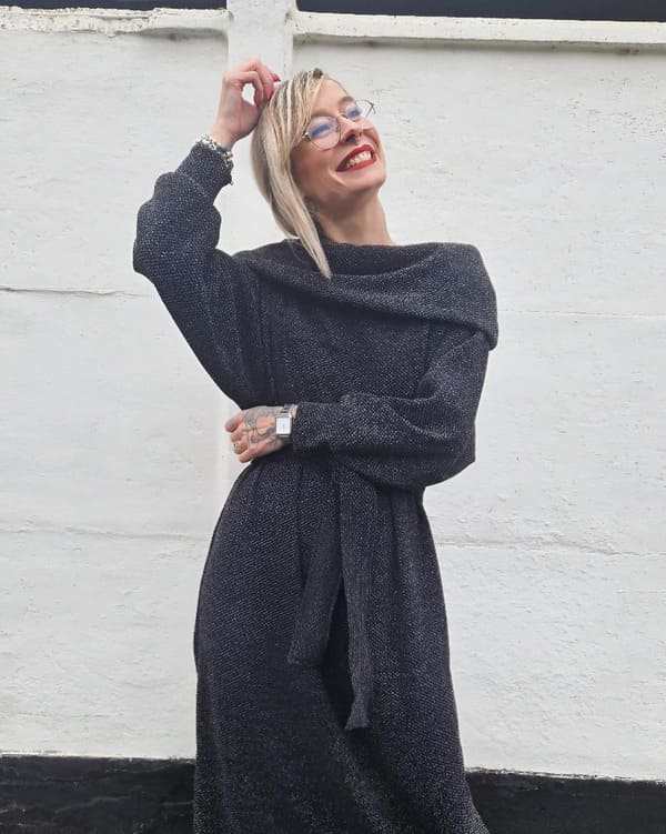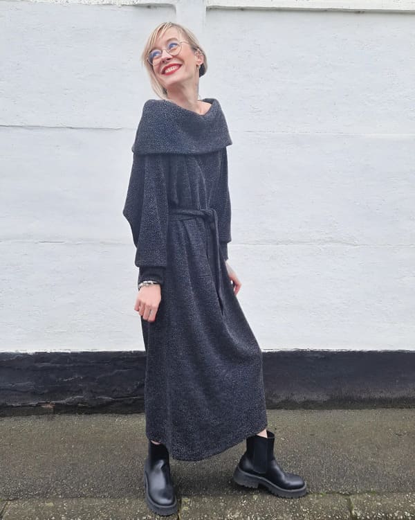 Brigitte est à la fois un pull, une robe courte ou longue. il est possible de ceinturer la robe.