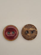 Boutons 15 mm. Teinte: bordeaux. Vendu à l'unité. Prix affiché pour 1 bouton.