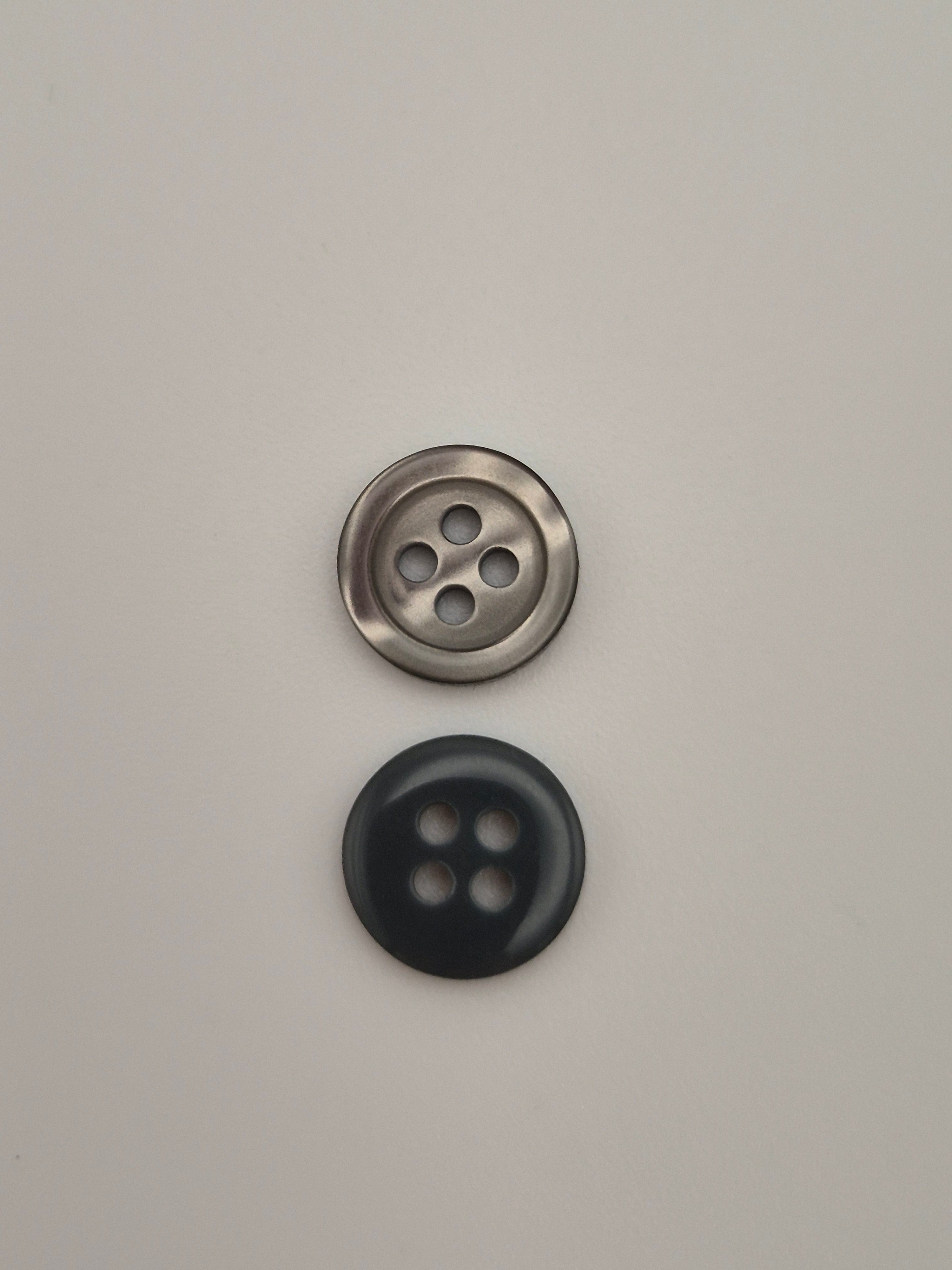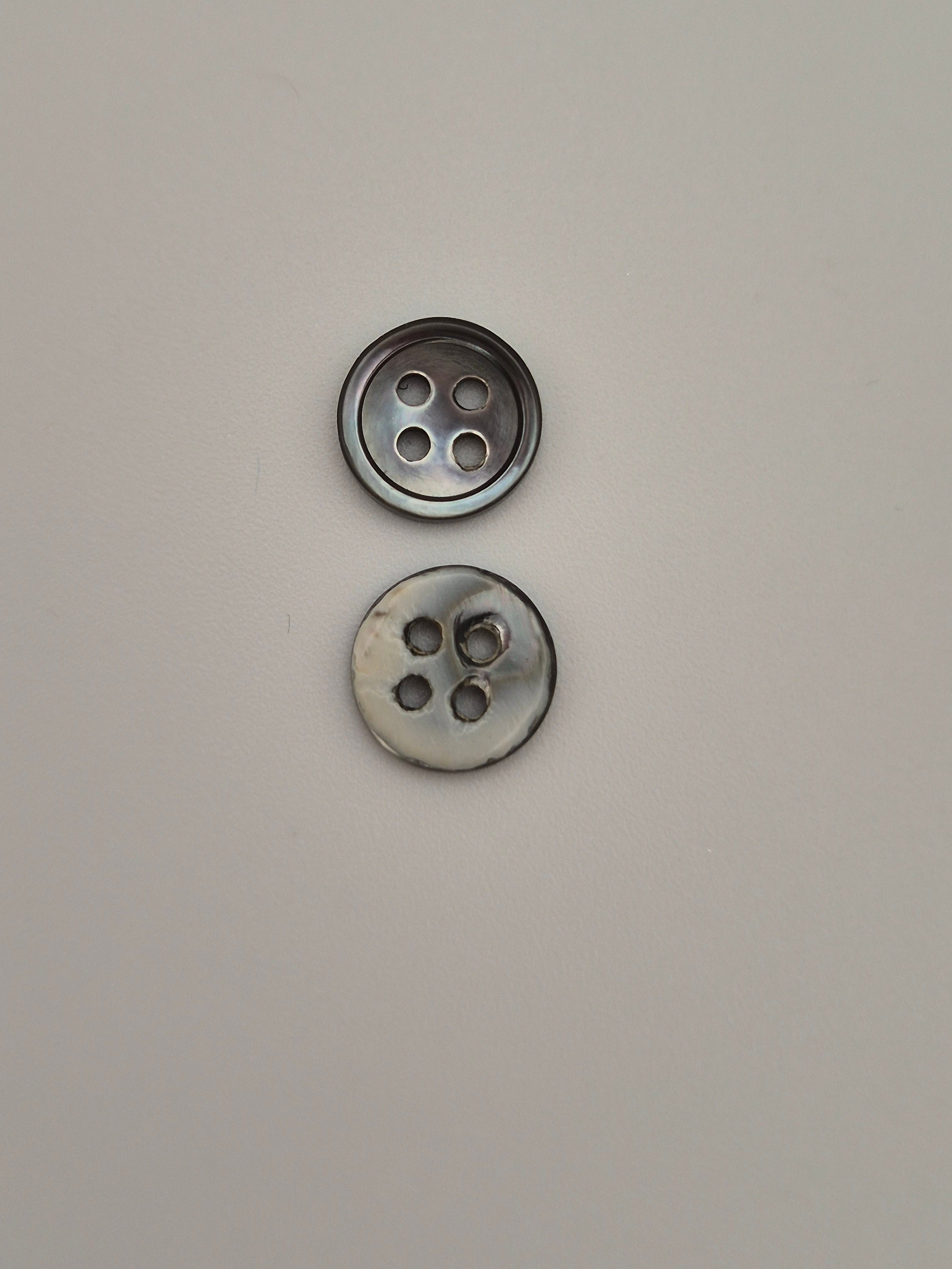 Boutons 9 mm. Teinte: gris. Vendu à l'unité. Prix affiché pour 1 bouton.