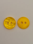 Boutons 15 mm. Teinte: jaune. Vendu à l'unité. Prix affiché pour 1 bouton.