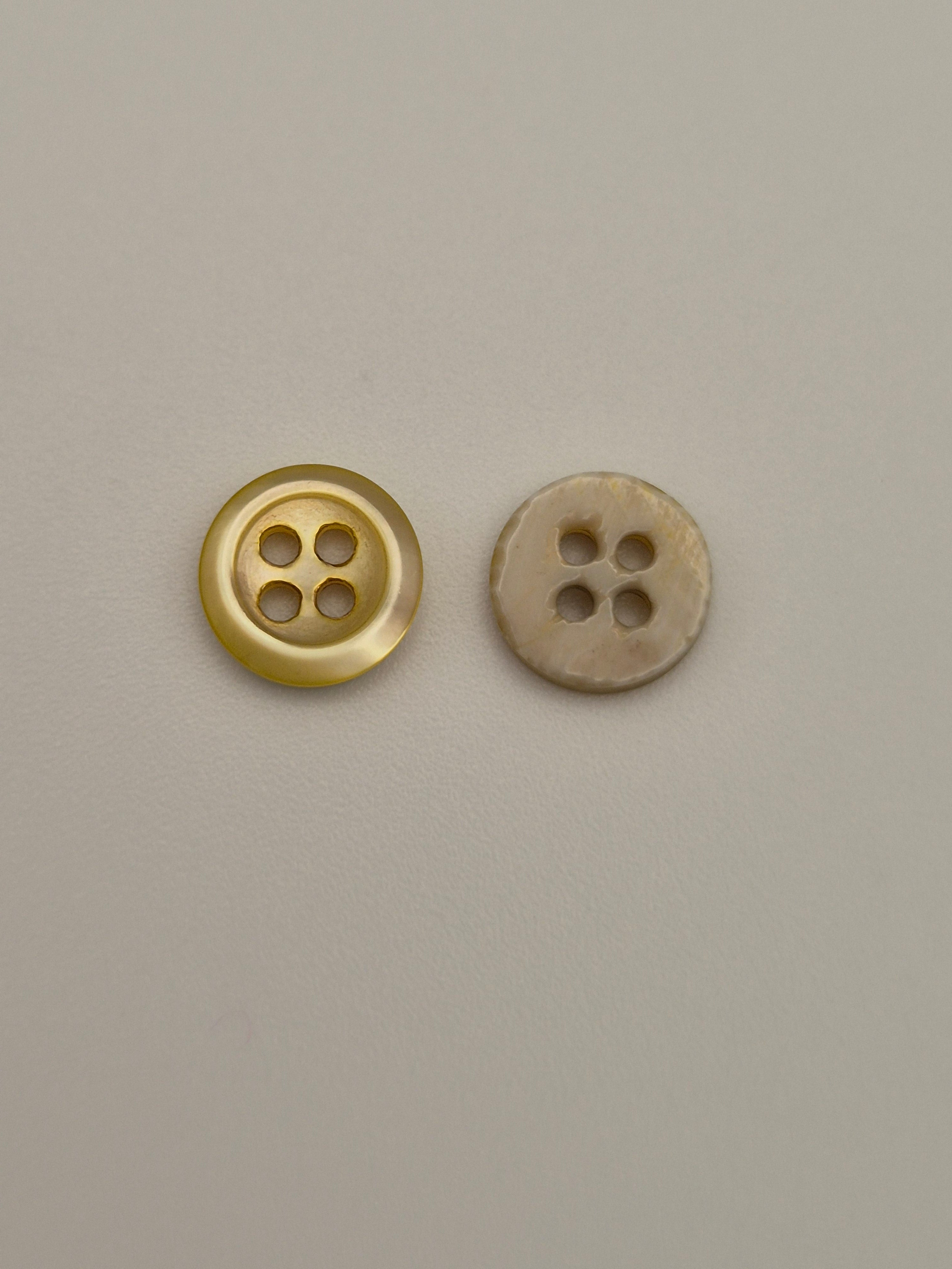 Boutons 9 mm. Teinte: naturelle. Vendu à l'unité. Prix affiché pour 1 bouton.