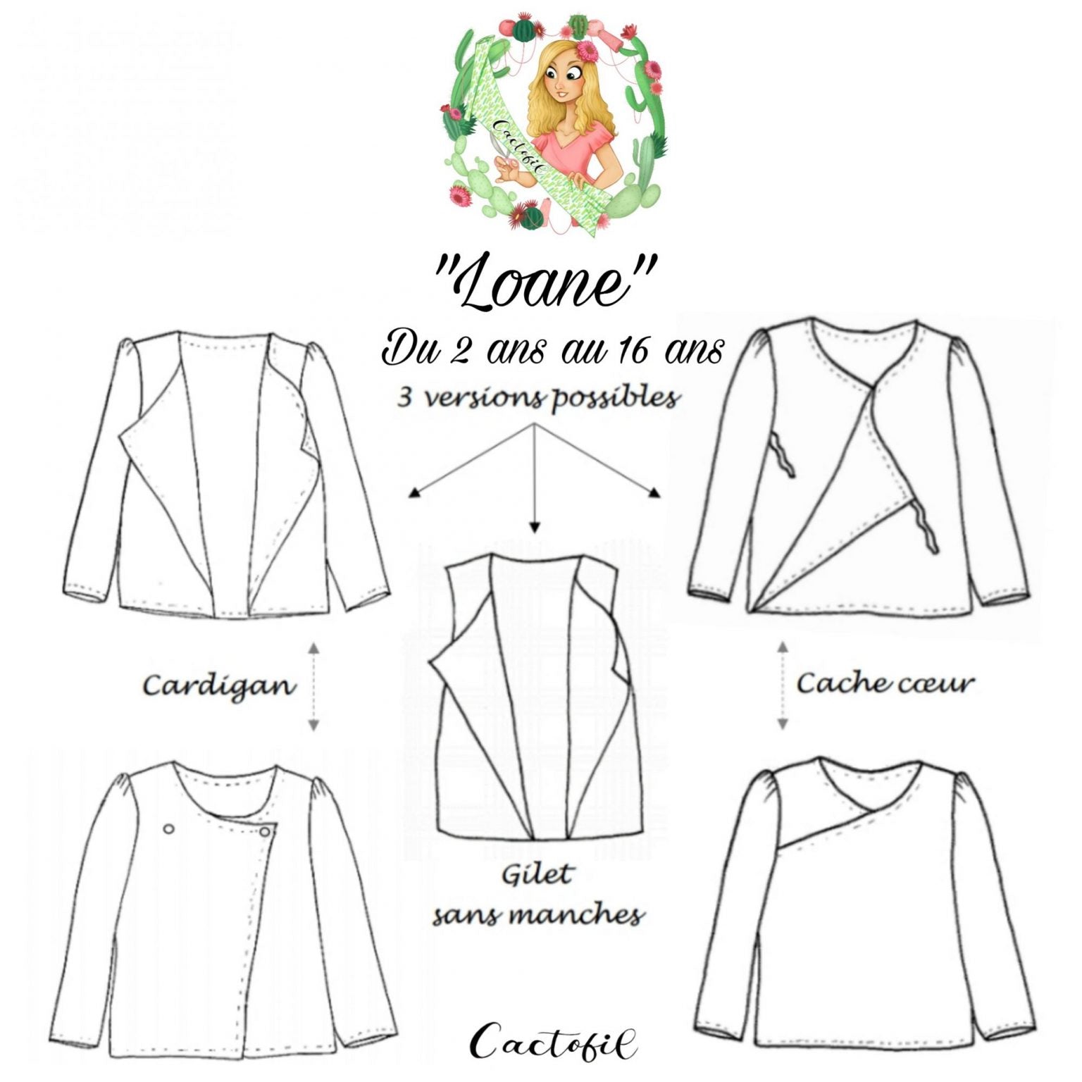 Cardigan / cache cœur / gilet sans manches Loane du 2 au 16 ans – Patron PDF - CACTOFIL