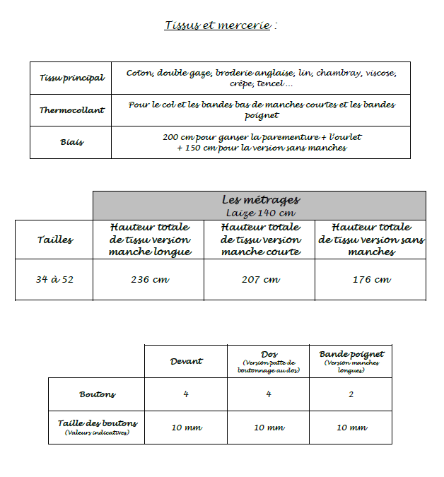 Pour vous accompagner dans votre projet, nous avons sélectionné les tissus et la mercerie adaptés à ce patron. Vous pouvez les retrouver dans "Complétez le pack couture".