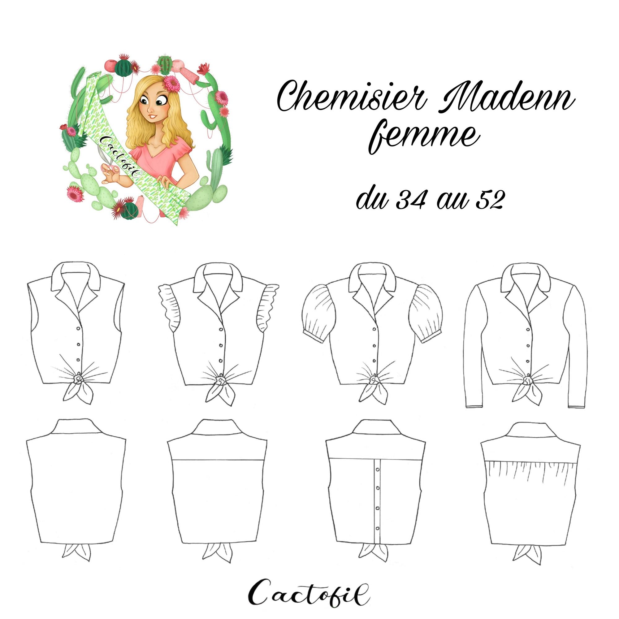 Le patron PDF MADENN femme de Cactofil est un chemisier élégant et structuré, idéal pour les couturières à la recherche d’un modèle à la fois féminin et original. Il se distingue par ses découpes soignées, son col en V et ses détails qui lui donnent une vraie personnalité.