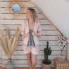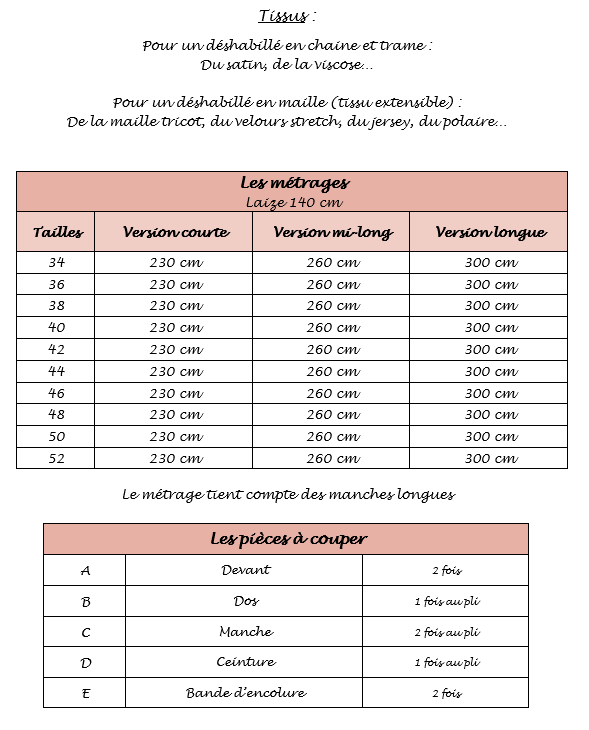 Sa coupe croisée avec ceinture à nouer souligne la taille et permet un enfilage facile, tout en offrant une silhouette fluide et flatteuse. C’est le projet parfait pour compléter un ensemble de nuit ou pour un moment cocooning à la maison.