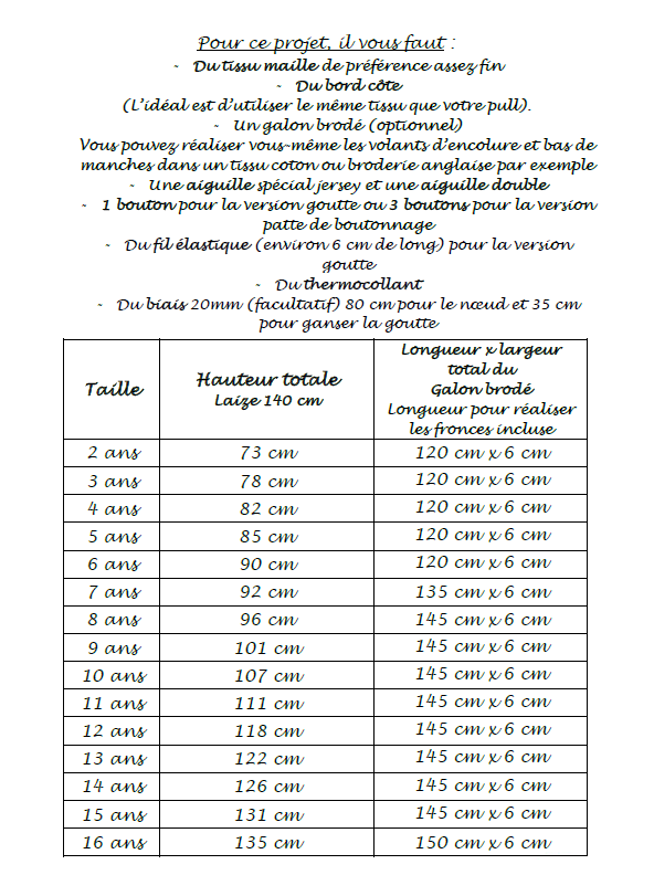Pour vous accompagner dans votre projet, nous avons sélectionné les tissus et la mercerie adaptés à ce patron. Vous pouvez les retrouver dans "Complétez le pack couture".