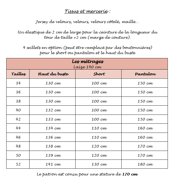 Pour vous accompagner dans votre projet, nous avons sélectionné les tissus et la mercerie adaptés à ce patron. Vous pouvez les retrouver dans "Complétez le pack couture".