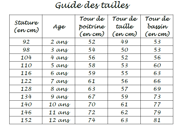 Tailles : du 2 au 12 ans