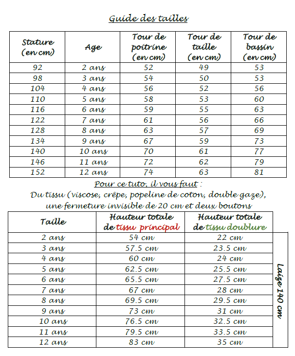 Tailles : du 2 au 12 ans