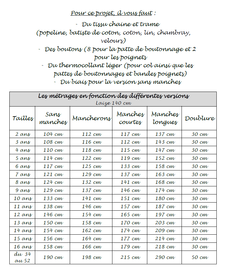 Avec leur empiècement doublé, ces robes garantissent de belles finitions et s’adaptent à de nombreux tissus : coton, double gaze, viscose, lin…