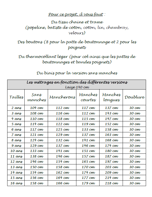 Pour vous accompagner dans votre projet, nous avons sélectionné les tissus et la mercerie adaptés à ce patron. Vous pouvez les retrouver dans "Complétez le pack couture".