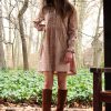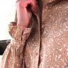 Les détails de cette robe ont été soignés, elle comporte un col arrondi avec un bande froncée insérée.
