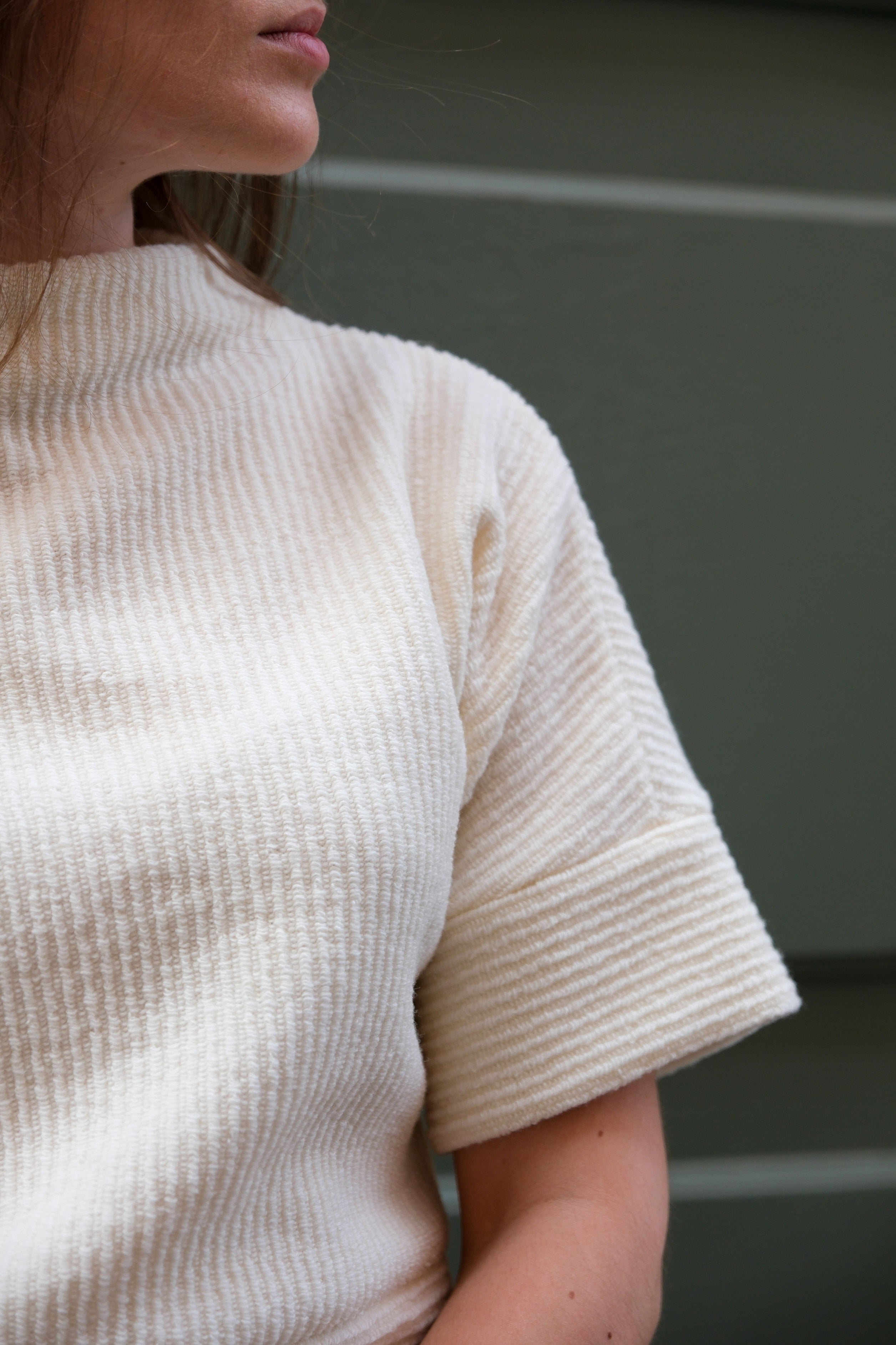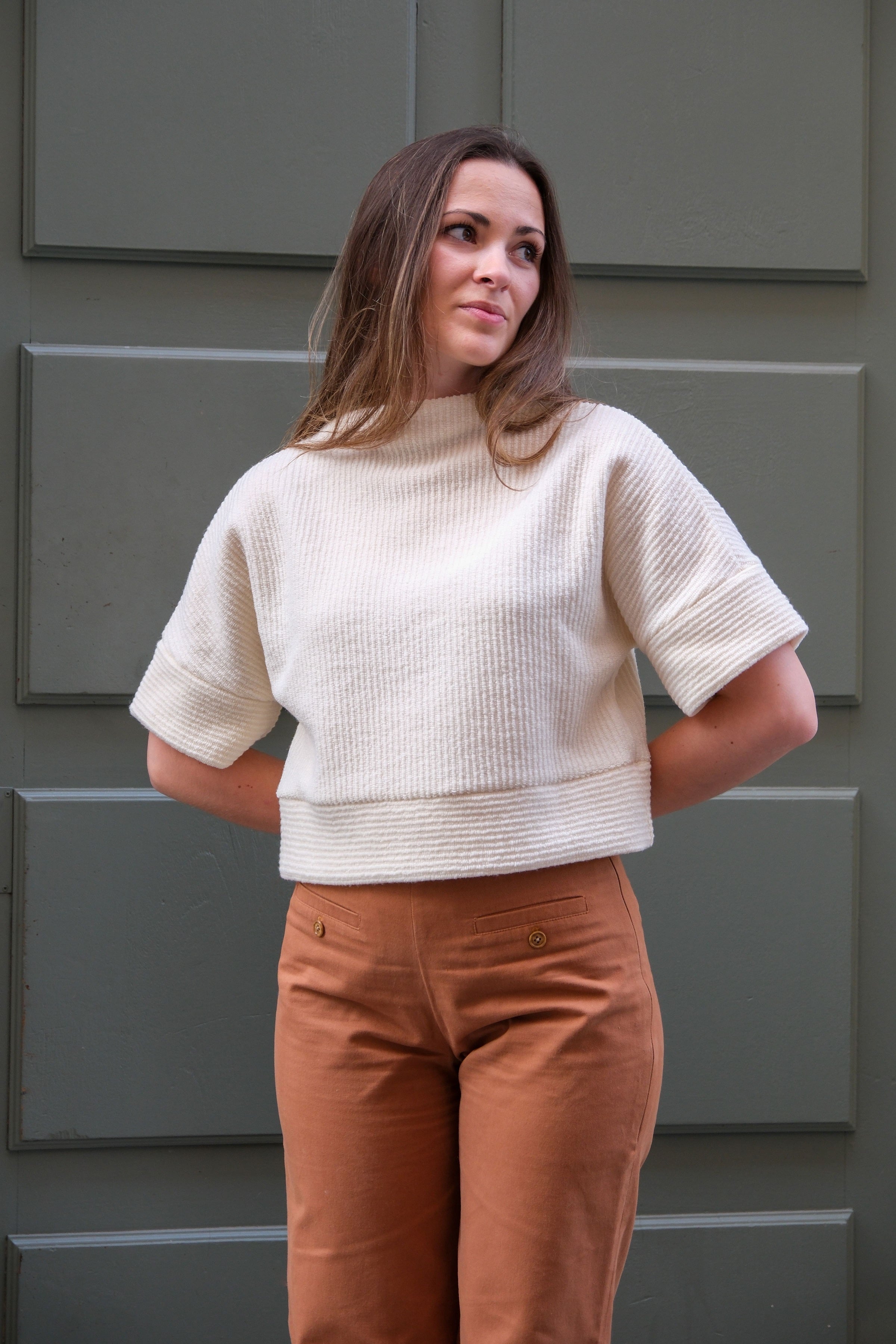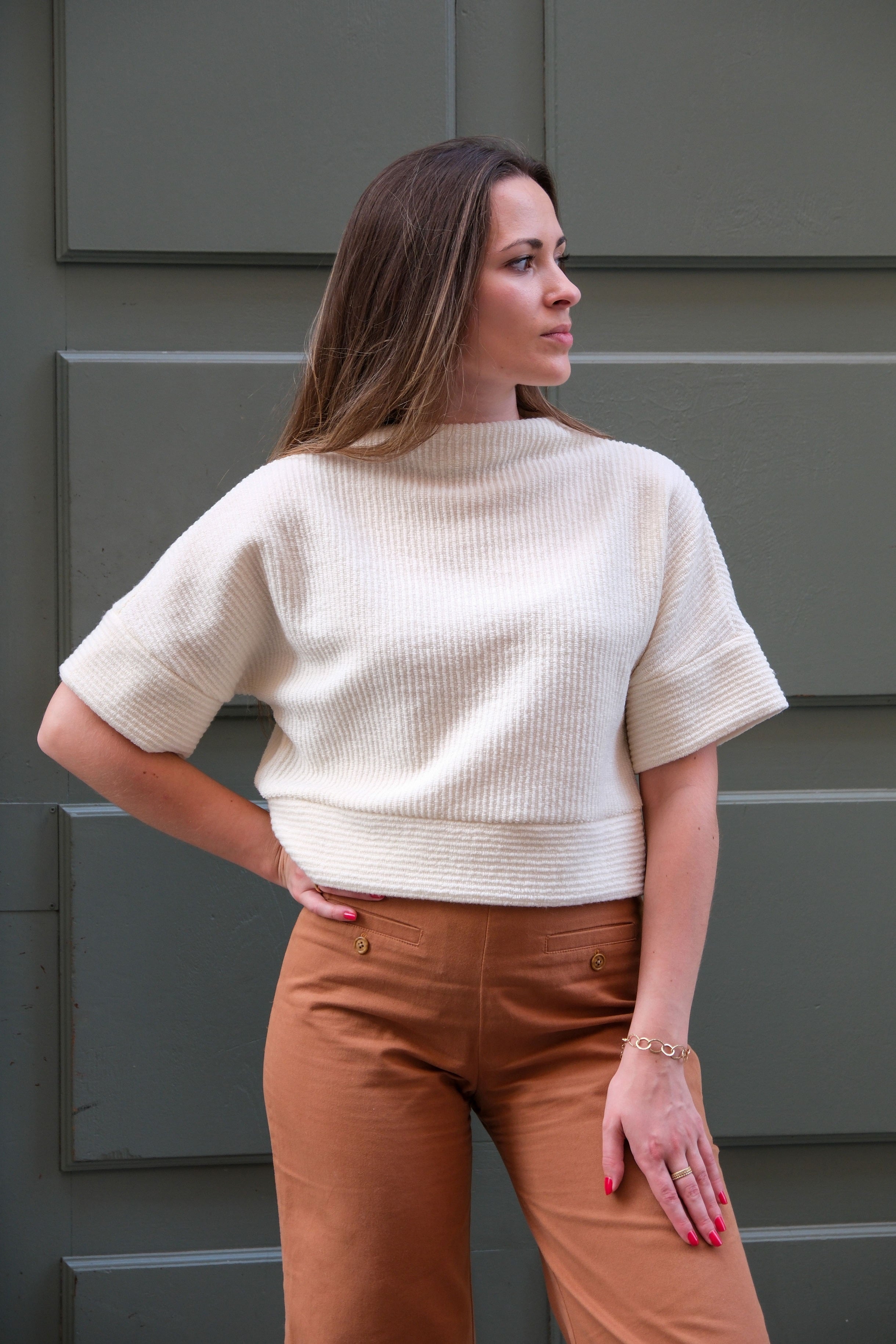 Inès est un pull manches courtes qui sera parfait pour une première expérience avec de la maille.
