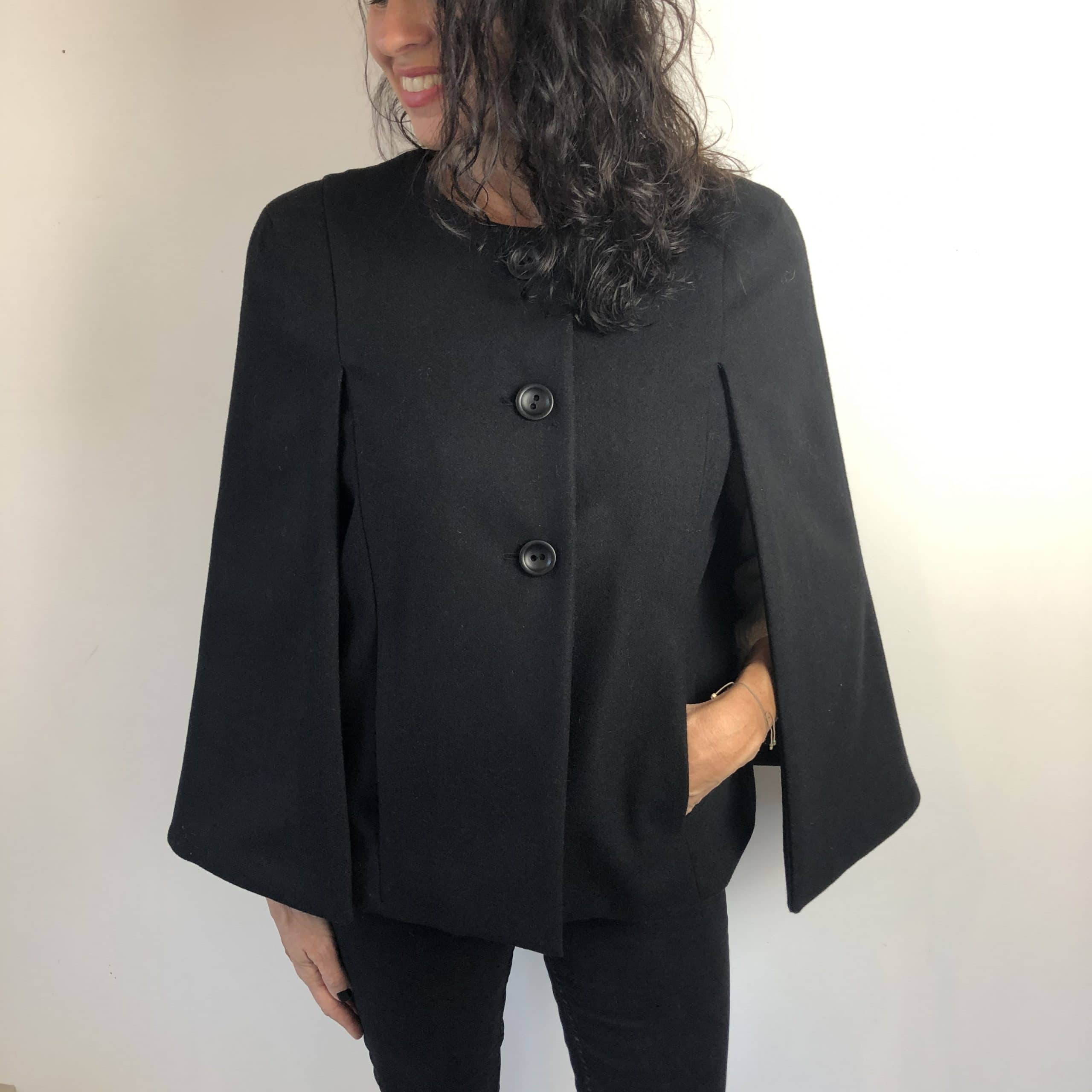 Une cape au volume flatteur, la carrure est joliment structurée par des pinces et des coutures.