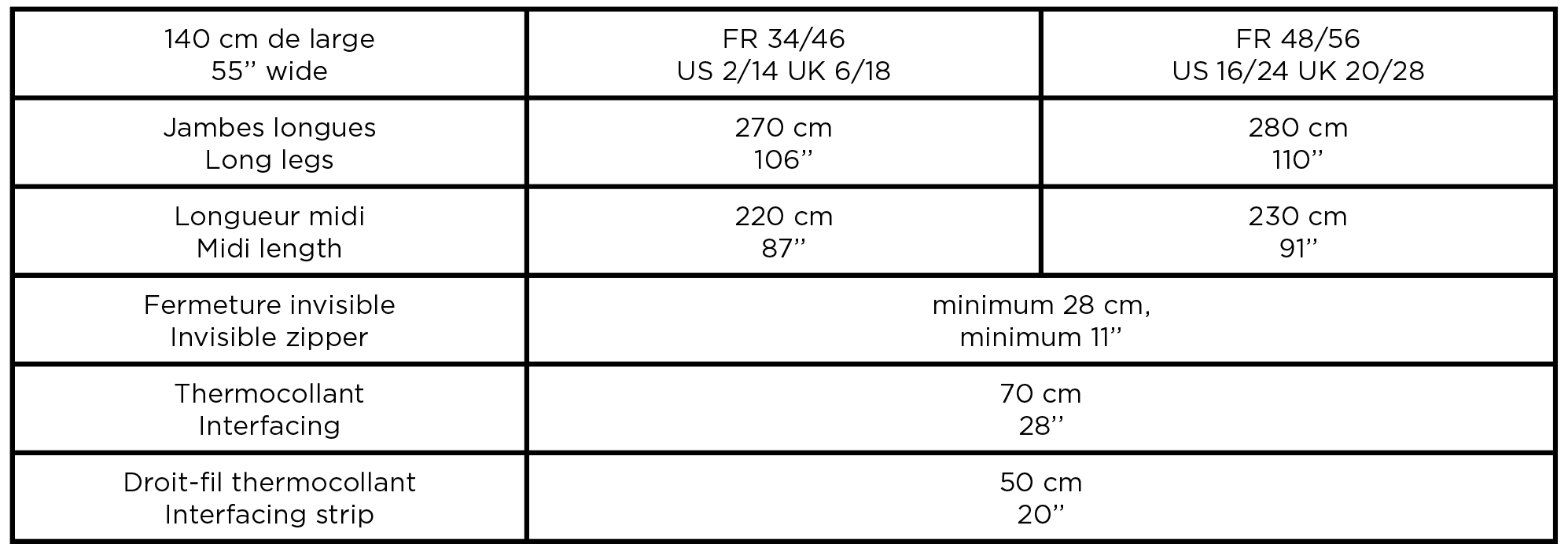 1 patron / 2 longueurs – du 34 au 56