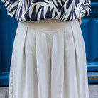 Sanaz est une jupe-culotte élégante et féminine, proposée en deux longueurs : midi ou longue. Avec sa taille marquée par une ceinture en forme et sa découpe western sur le devant, elle combine modernité et originalité. Ses poches italiennes discrètes ajoutent une touche pratique et raffinée, tandis que la fermeture invisible sur le côté assure une finition soignée.
