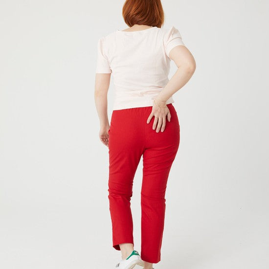 Palace, c'est le patron de couture d'un pantalon 7/8ème avec une taille dos élastique. Vous avez le choix entre deux types de ceintures sur le devant.
