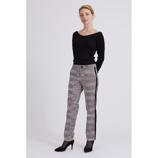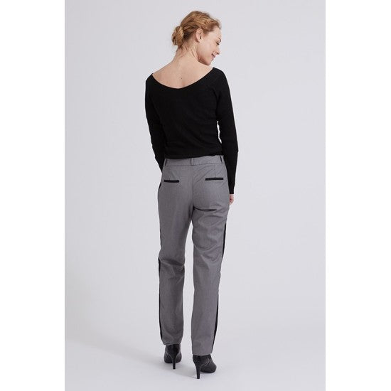 Avec ses bandes contrastées et ses fausses poches passepoilées au dos, le pantalon Perrine s’inscrit parfaitement dans la tendance actuelle. Chic, dynamique et résolument moderne, il allonge la silhouette avec sa coupe fuselée flatteuse.