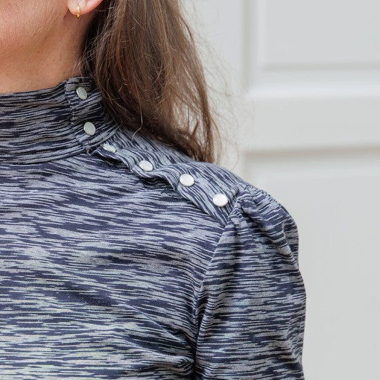 Erell, le T-shirt à col montant et détail boutonné