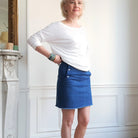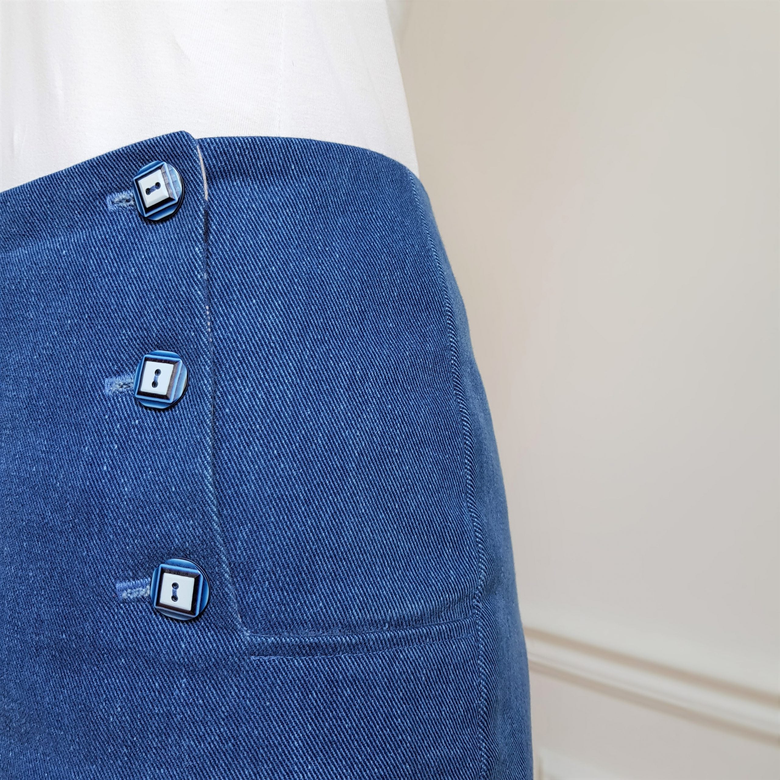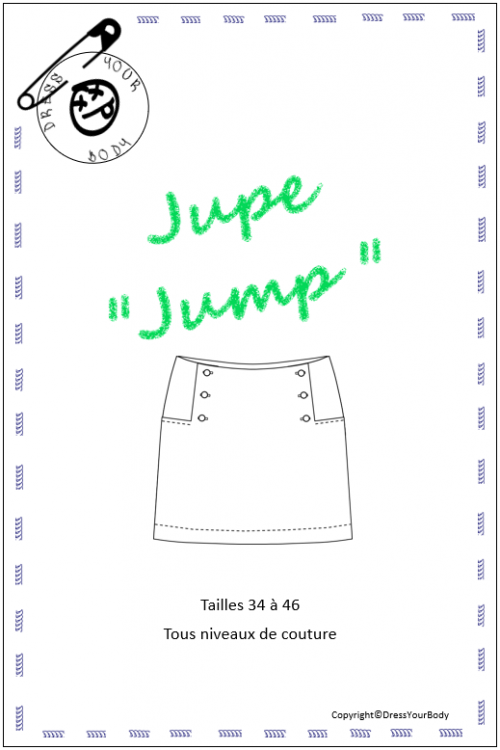 La jupe Jump est une petite jupe à pont, courte, d’inspiration marin avec ses 2 colonnes de boutons de chaque côté. Pas de zip, pas de ceinture, elle est très facile à réaliser.