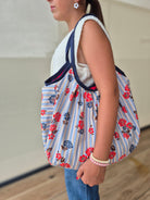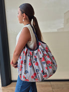 Réalisé ici dans un tissu demi-natté qui lui apporte tenue et solidité, il est parfait pour transporter toutes vos affaires avec style. Ses anses confortables permettent un porté épaule agréable et féminin.