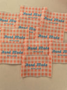 Apportez une finition originale et tendance à vos créations grâce à cette étiquette “Hand Made” au motif vichy rose.