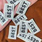 • - Les étiquettes comprennent des bords pré-pliés permettant de les coudre directement sur le vêtement ou l’accessoire.