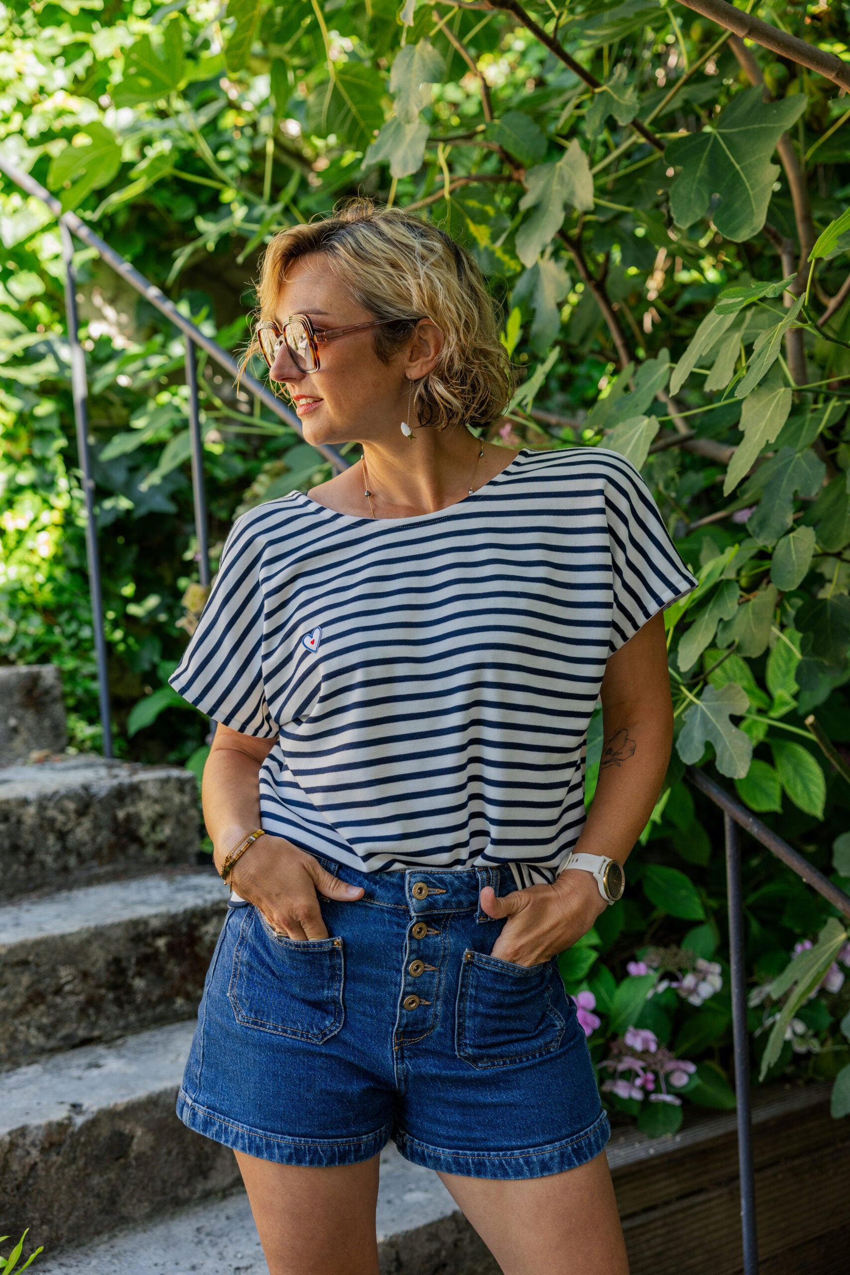 Le décolleté V de la marinière Sail met délicatement votre nuque et votre dos en valeur tout en restant chic et raffinée.
