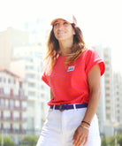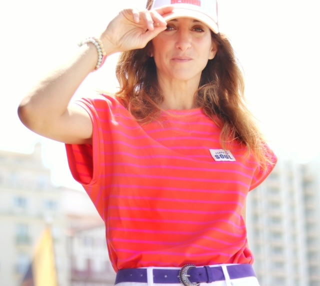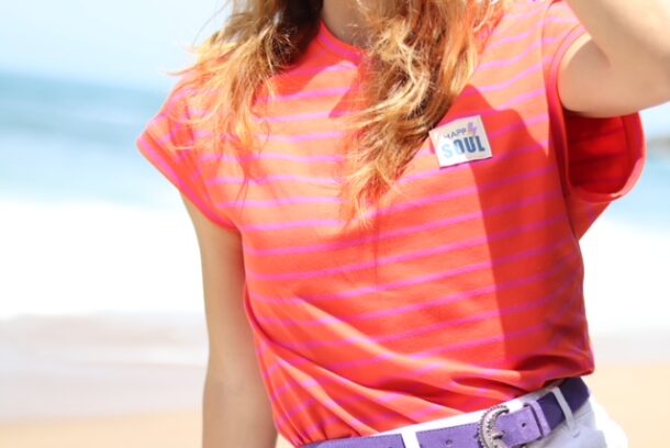 Le T-shirt LE TISH est sans manches. Il se porte ample, ses épaules sont tombantes. Son encolure ronde est terminée par une bande d’encolure, les bas de manches par des bracelets de manches. Il est terminé par un ourlet simple. Uni ou version marinière, c’est un basique facile et rapide à coudre.