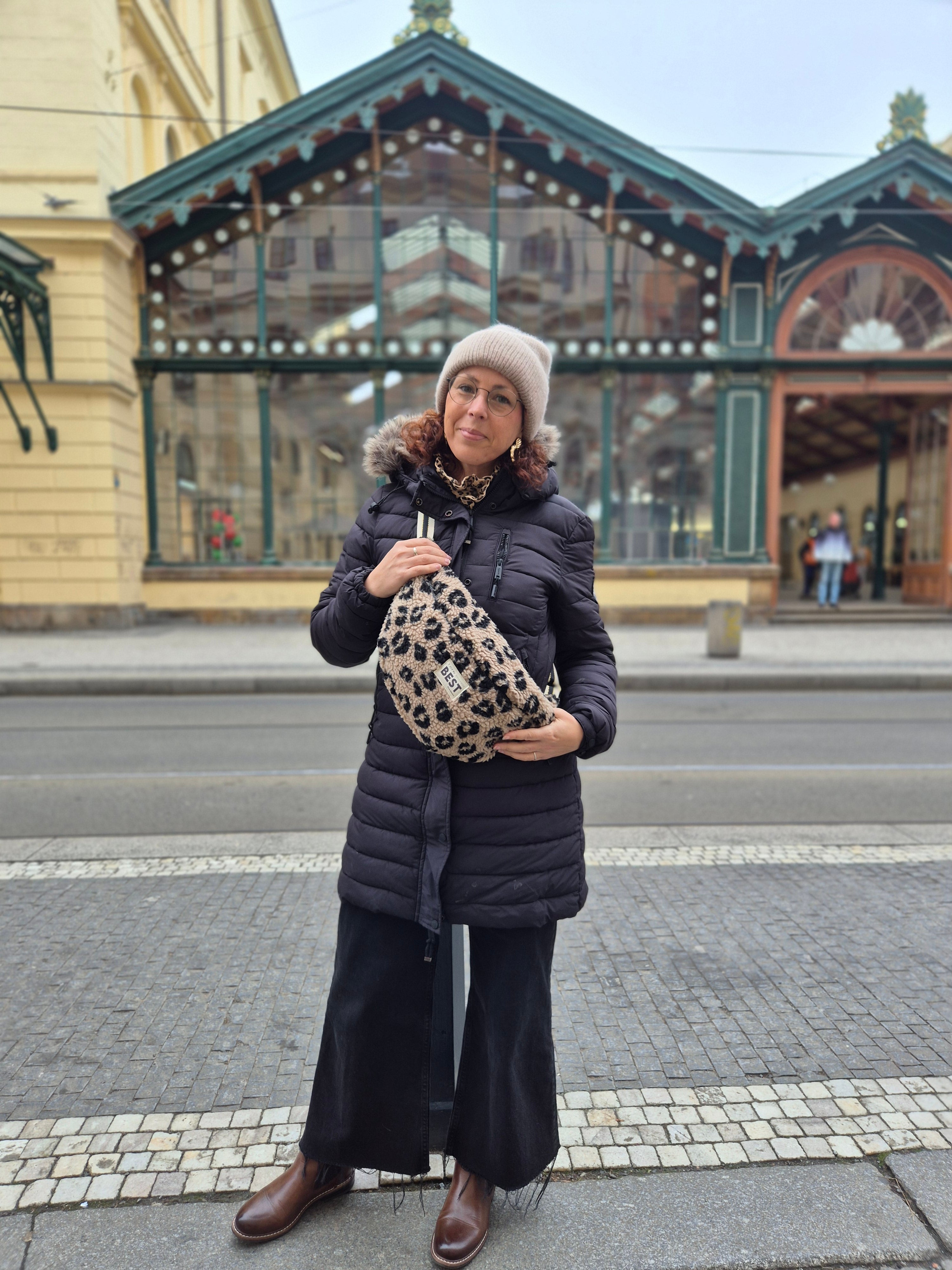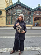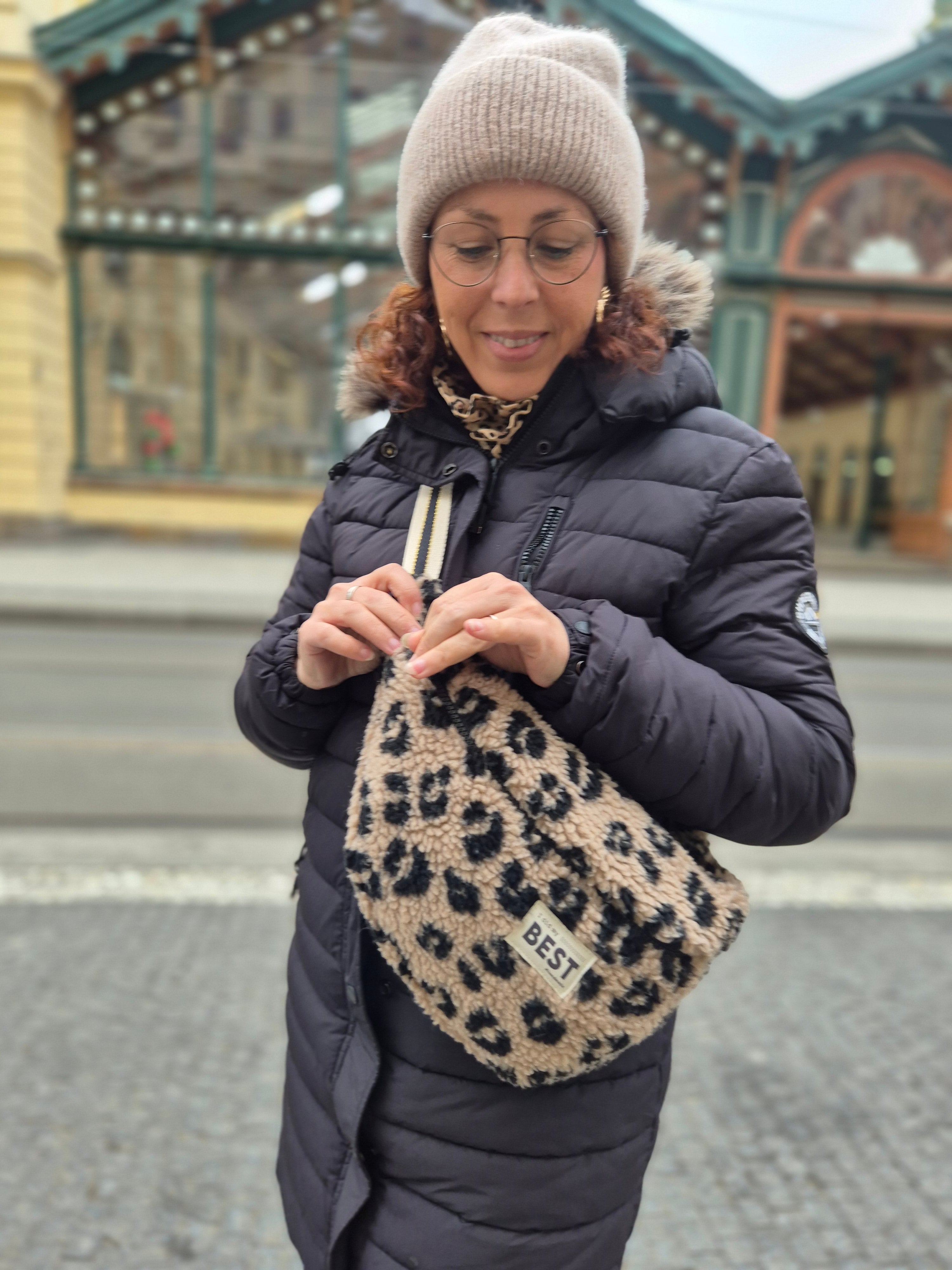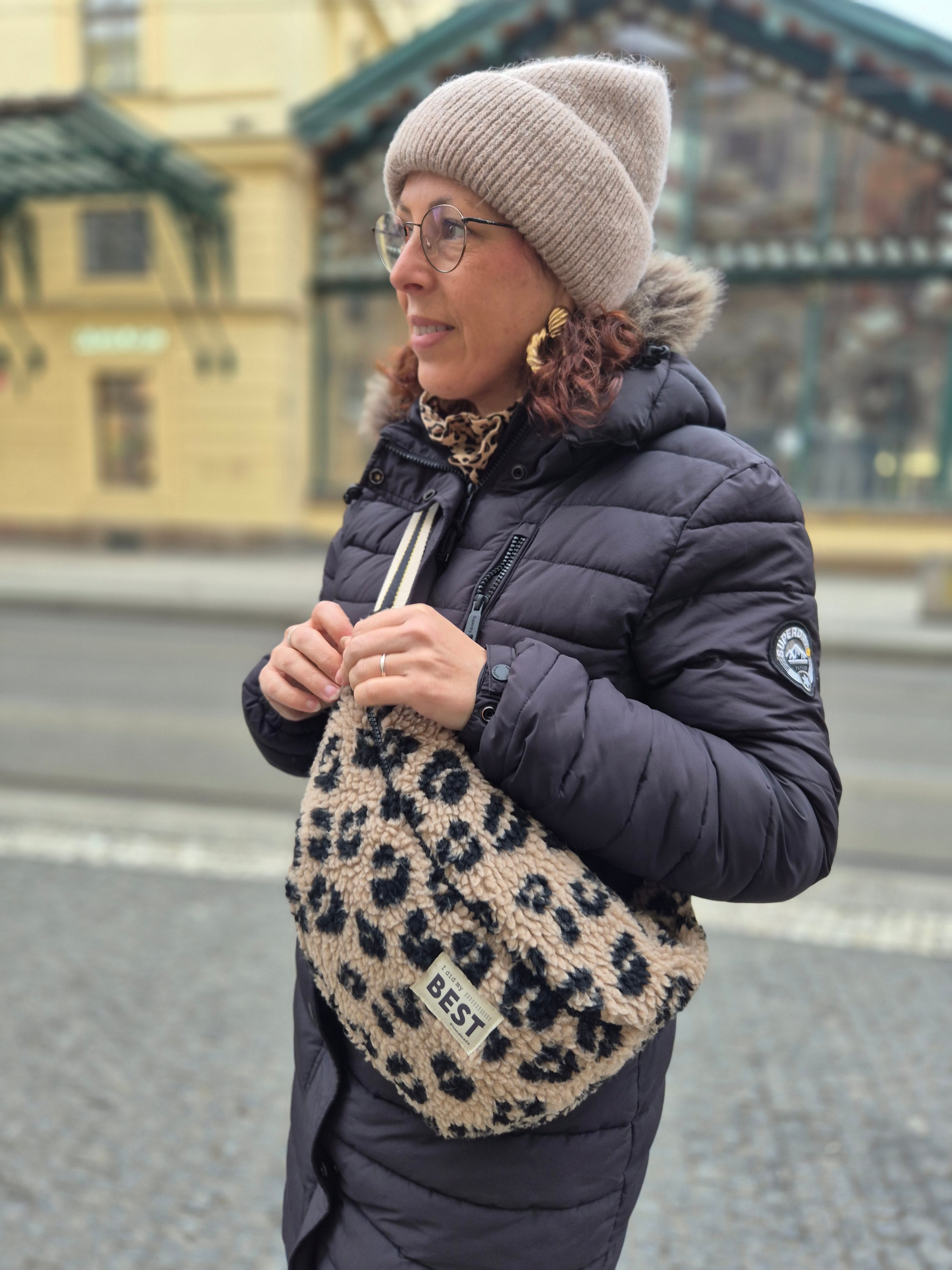 La banane By Nat Patterns cousue dans un sherpa léopard est l’accessoire parfait pour affronter l’hiver avec style.