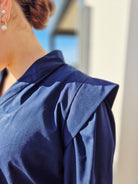 Cousue dans une popeline de coton marine, elle devient une pièce intemporelle, idéale pour le quotidien comme pour des tenues plus habillées.