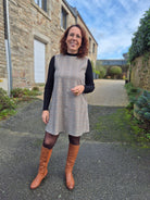 Avec sa coupe épurée et légèrement évasée, la robe chasuble est un modèle versatile et accessible, qui s’adapte à toutes les morphologies.