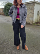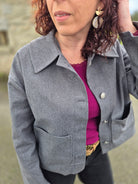 Cousue ici dans un denim recyclé gris, la veste Tilda prend une allure à la fois urbaine et responsable.