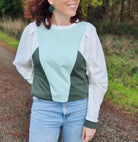 Cousu en french terry dans un esprit color block, il devient un sweat unique, confortable et stylé, parfait pour le quotidien.