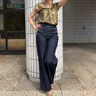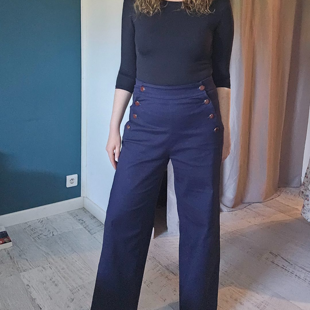 Vous avez la possibilité de coudre un pantalon wide leg, une coupe ajustée jusqu’à mi-cuisse puis évasée pour créer un joli mouvement en bas de jambe. Il est également possible de coudre un pantalon à la coupe plus droite.