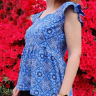 Vous pourrez également vous appropriez le modèle en choisissant la longueur de manche qui vous correspond : sans manche, mancherons volantés, manches courtes ou manches 3/4 à étages soulignés par des smocks.