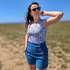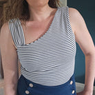 Vakita est le modèle estival à coudre en maille, offrant style et confort. Sa coupe asymétrique est conçue pour rester compatible avec le port d’un soutien-gorge, grâce à sa bretelle ajoutée. Le charme de Vakita réside également dans son plissé sur l’épaule. Le haut du buste est doublé jusqu’en dessous de la poitrine pour assurer de belles finitions. Ce modèle vous offre un vaste choix de styles : crop, top, robe moulante ou encore robe patineuse.