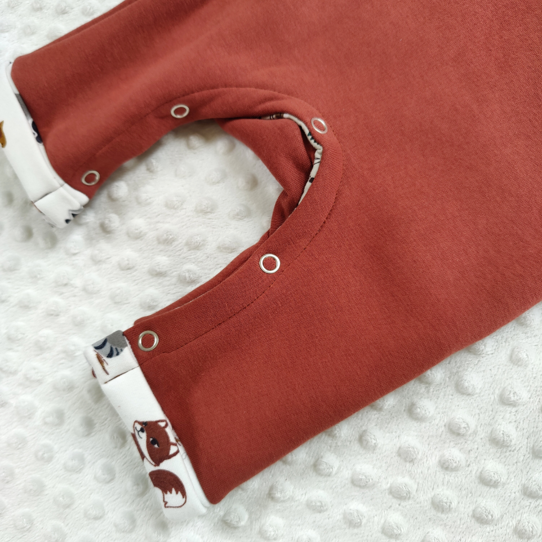 La salopette Faon doit être cousue dans un tissu extensible avec un peu de tenue et adapté aux bébés. Le tissu n’a toutefois pas besoin de présenter un fort taux d’élasticité. Je vous conseille de coudre cette salopette dans du sweat, du molleton, du french terry ou encore du jersey texturé.