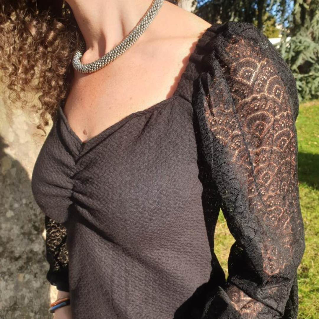 Vous avez la possibilité de coudre ce top en version manches courtes ou longues. Les manches sont ballons et resserrées par un bracelet.