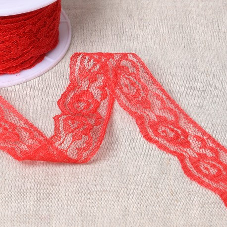 Dentelle Rachel roses 28 mm – Galon floral - coloris Rouge
