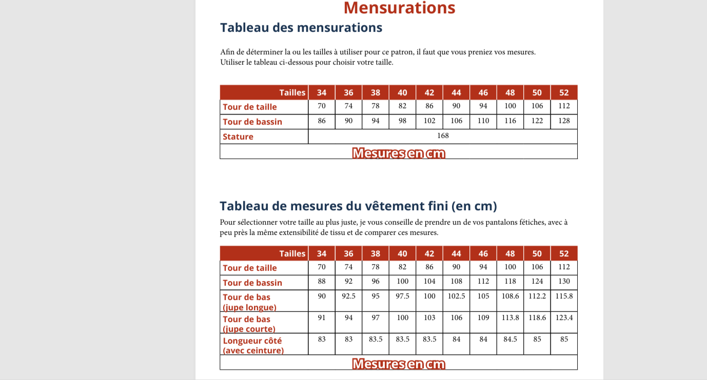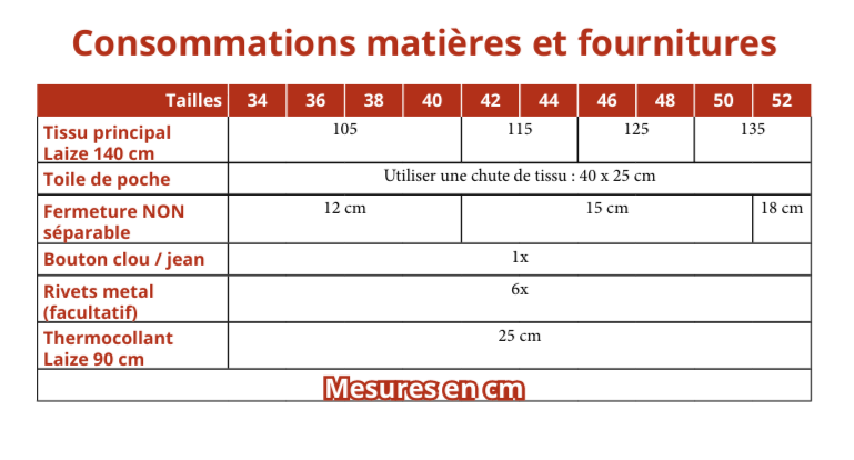 Ce patron est conçu pour un modèle avec élasticité, nécessitant un minimum de 20 % d’élasticité pour un confort optimal.