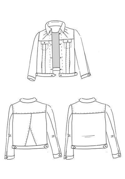 PILAR, c'est le blouson dont nous rêvions chez Maison Fauve : une jolie coupe droite, ni trop large, ni trop courte et des finitions surpiquées. Mais nous sommes incorrigibles et nous ne pouvions nous passer de détails signatures pour ce beau patron : un travail de pinces piquées sur le devant du blouson et la possibilité de coudre un joli dos avec un pli creux pour twister l'emblématique pièce en jean ou un dos sans pli.