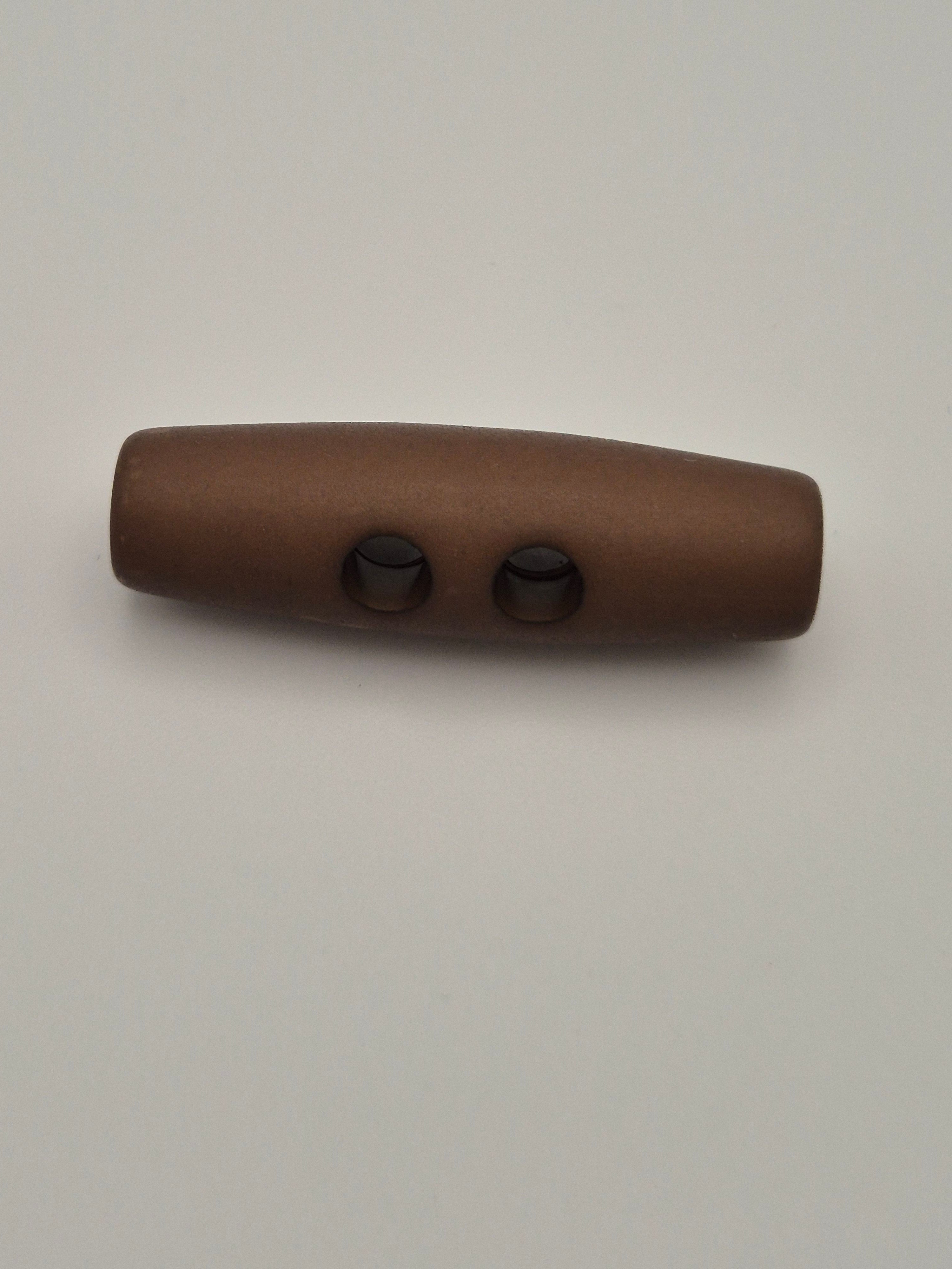 Fabriqué dans un matériau résistant (bois, plastique, corne ou métal selon le modèle), ce bouton peut également être utilisé comme élément décoratif sur des vêtements ou accessoires.