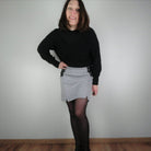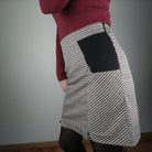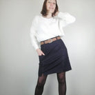 City est une jupe courte non doublée, très legèrement évasée, à découpes ou à poches, avec deux minis fentes triangulaires devant.